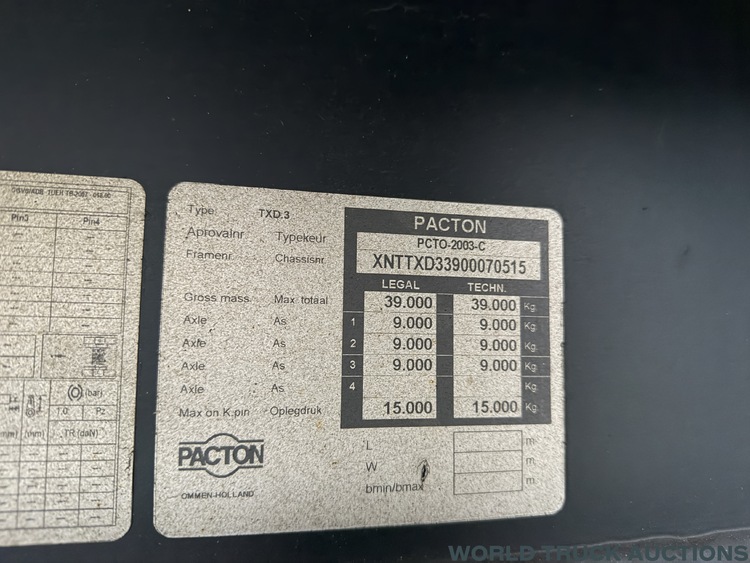 Pacton TXD-339 | Curtainside Tautliner Hardwood floor + Alu Sideboards | 3 Axle | semi-trailer 0515 | 2011