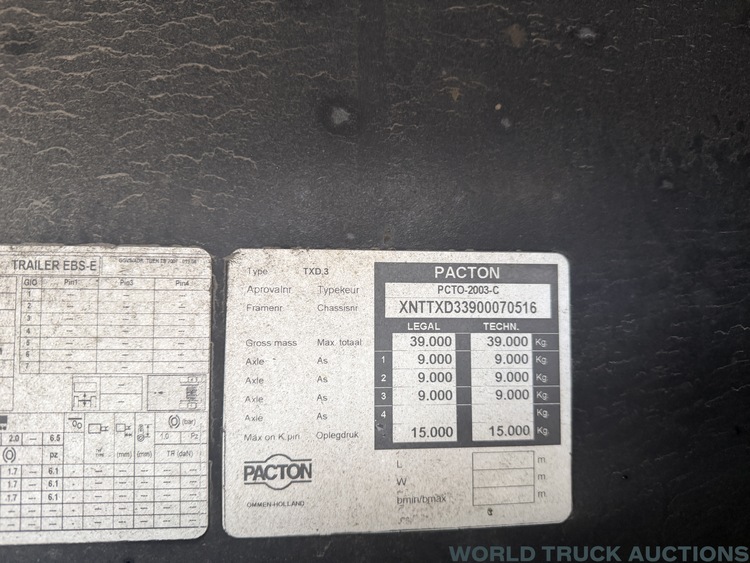 Pacton TXD-339 | Curtainside Tautliner Hardwood floor + Alu Sideboards | 3 Axle | semi-trailer 0516 | 2011